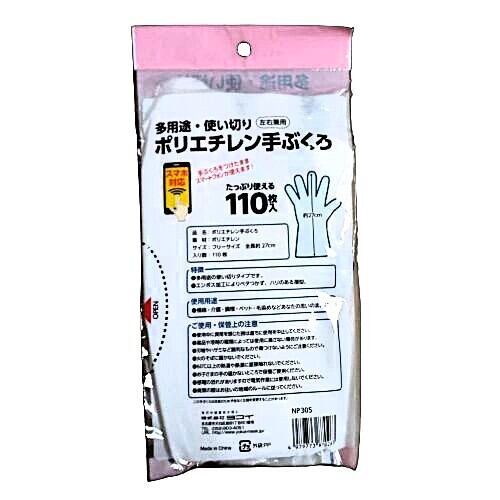 多用途・使い切り ポリエチレン手ぶくろ NP-305 左右兼用 フリーサイズ 110枚入