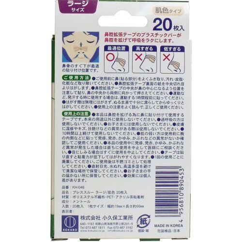 ブレススルー クール 鼻腔拡張テープ ラージサイズ 肌色 20枚入