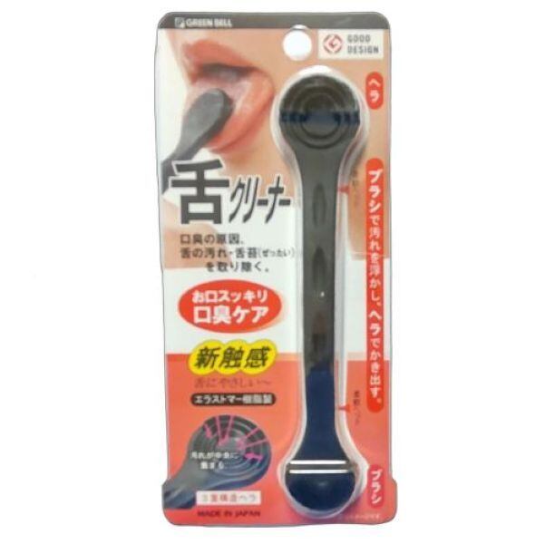・口臭の原因、舌の汚れ、舌苔を取り除く、ブラシとヘラタイプが一体となった舌磨きです