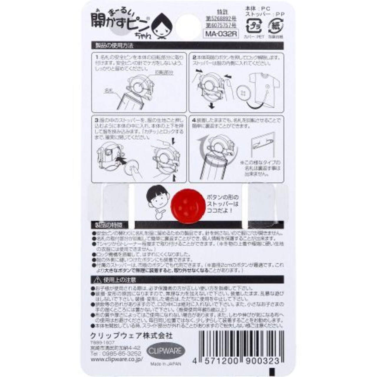 ・安全ピンの替わりに、名札を服に留めるための製品です