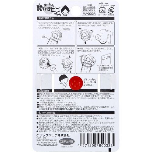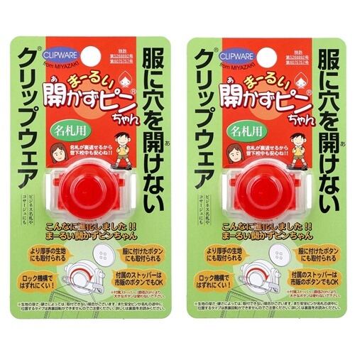 【 2個セット 】 まーるい開かずピンちゃん レッド 名札用 MA-032R 日本製 名札クリップ 服に穴を開けない名札留め 穴あき防止