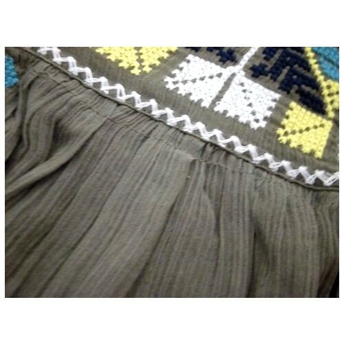 ファッショナブルな胸元の刺繍に柔らかでナチュラルなコットン素材のさらっとした仕上がりがお洒落、